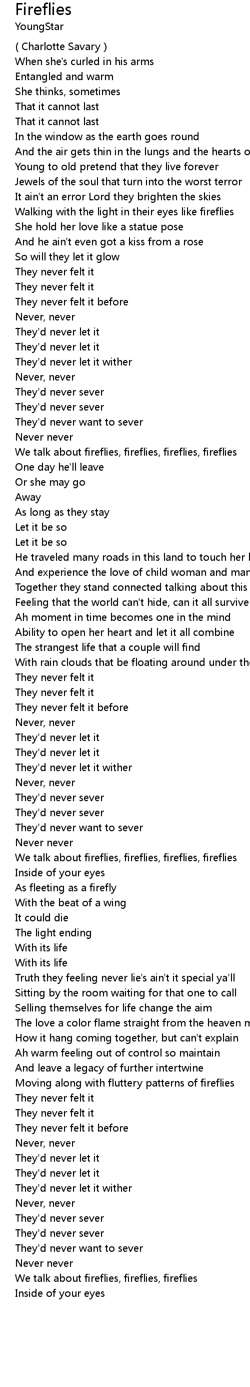 We talk about fireflies, fireflies, fireflies, fireflies |
