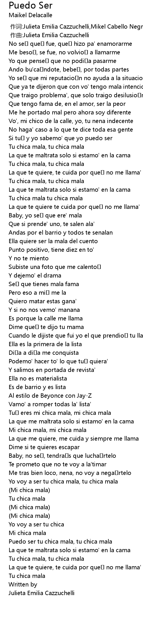 | [00:54.965] | Tu chica mala, tu chica mala |