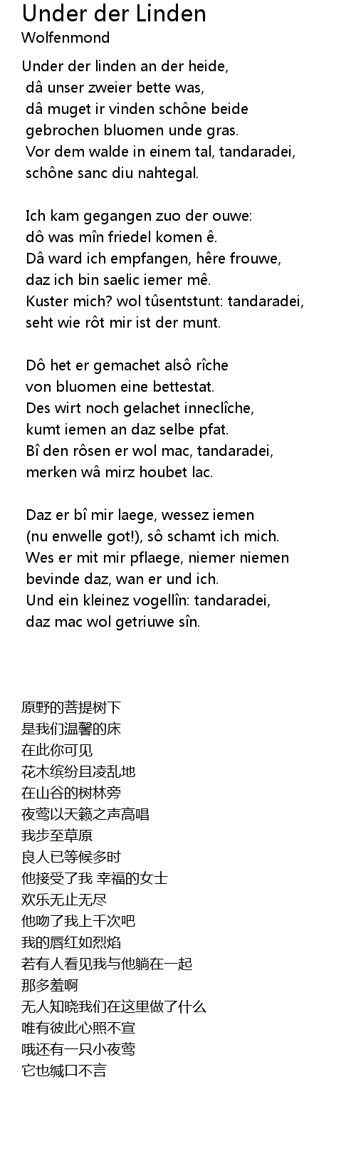| Under der linden an der heide, | |