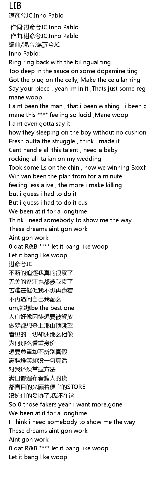 | [01:14.400] | 0 dat R&B **** let it bang like woop |