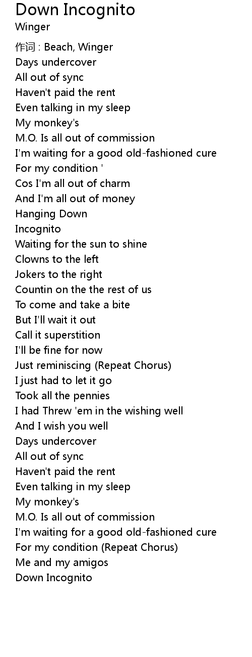 | 作词 : Beach, Winger | |