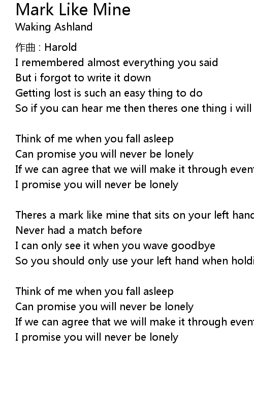 | Song | Mark Like Mine |