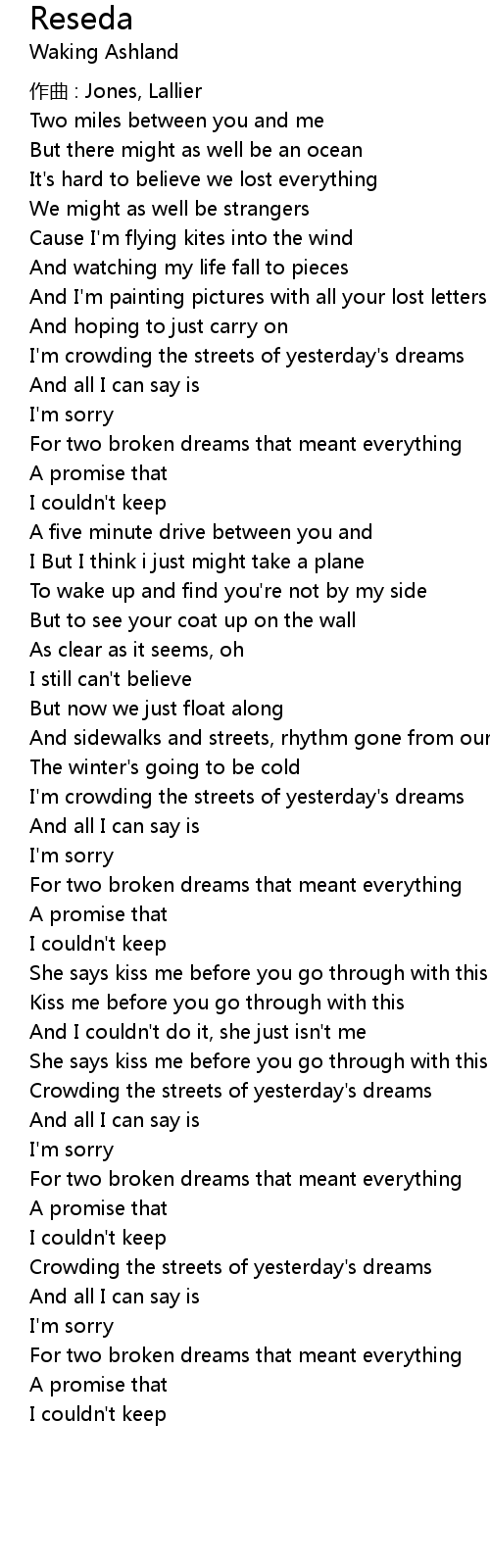 | I' m crowding the streets of yesterday' s dreams | |