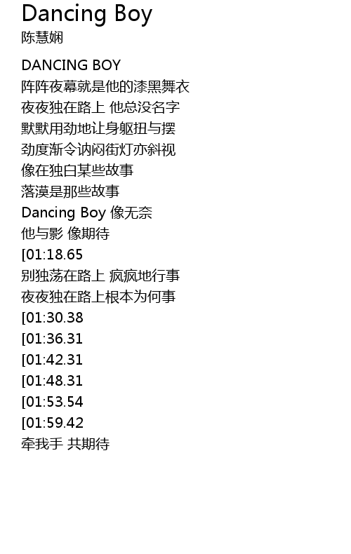 | [01:02.74] | Dancing Boy 像无奈 |