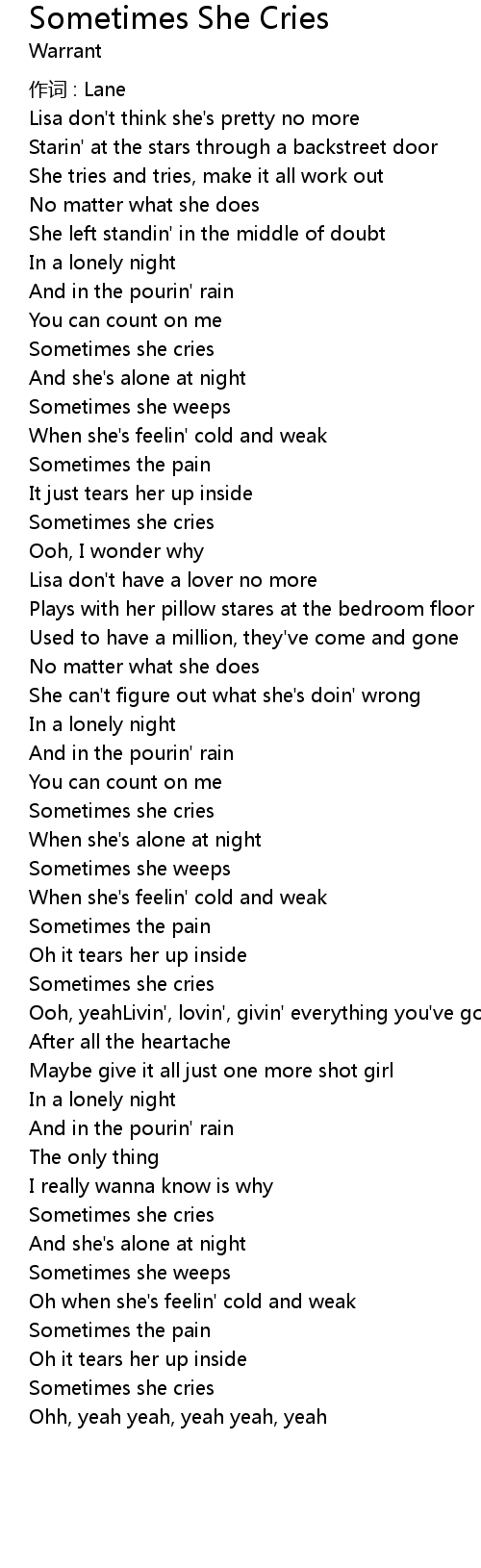| Sometimes she cries | |