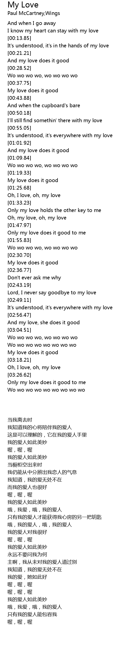 Oh, I love, oh, my love |