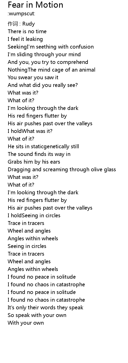 | Song | Fear in Motion |
