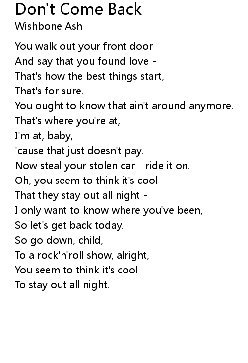 | Song | Don't Come Back |