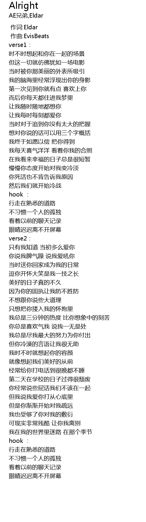 | [00:01.000] | 作词:Eldar |