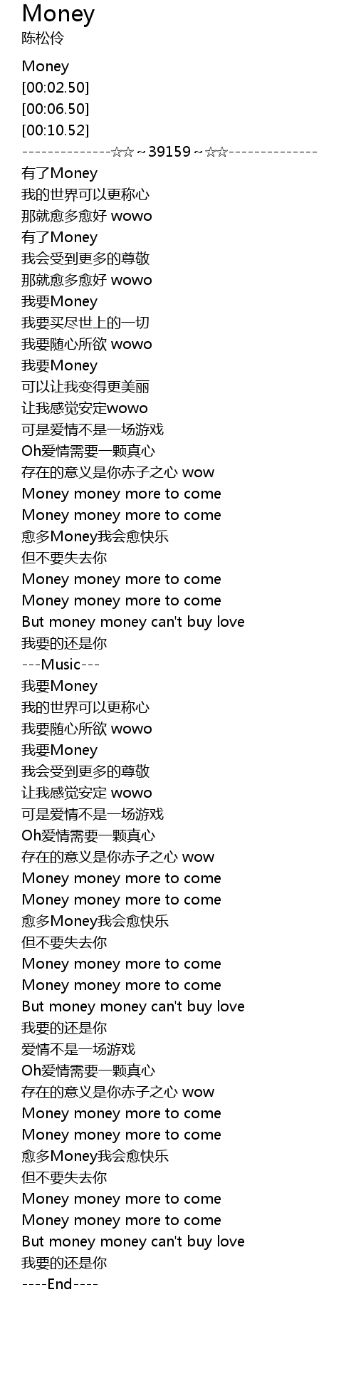 | [02:41.08] | But money money can' t buy love |
