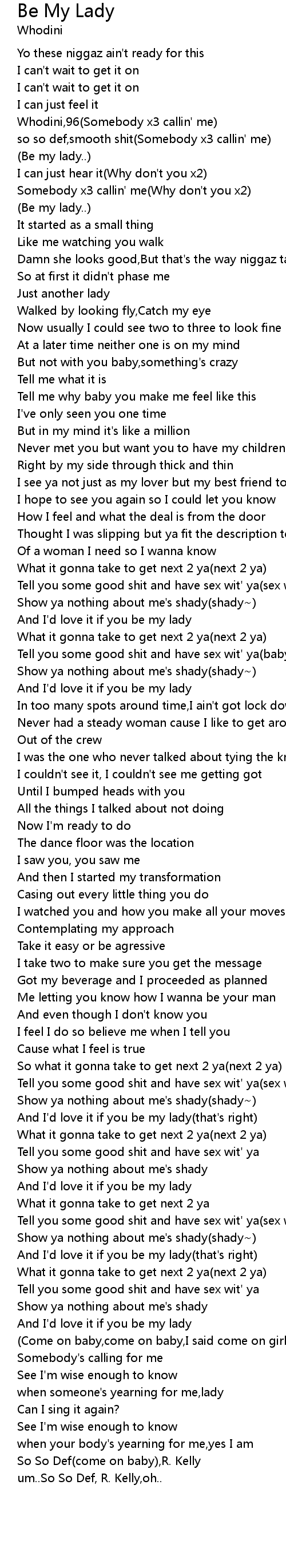 | [02:50.52] | And I'd love it if you be my lady(that's right) |