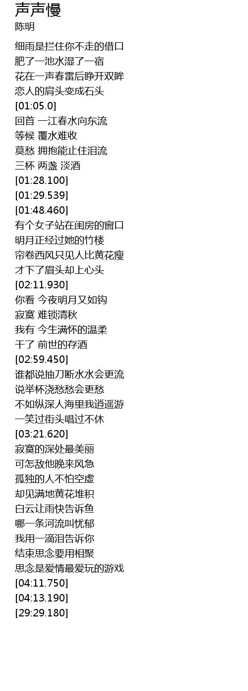 | [03:00.700] | shui dou shuo chou dao duan shui shui hui geng liu |