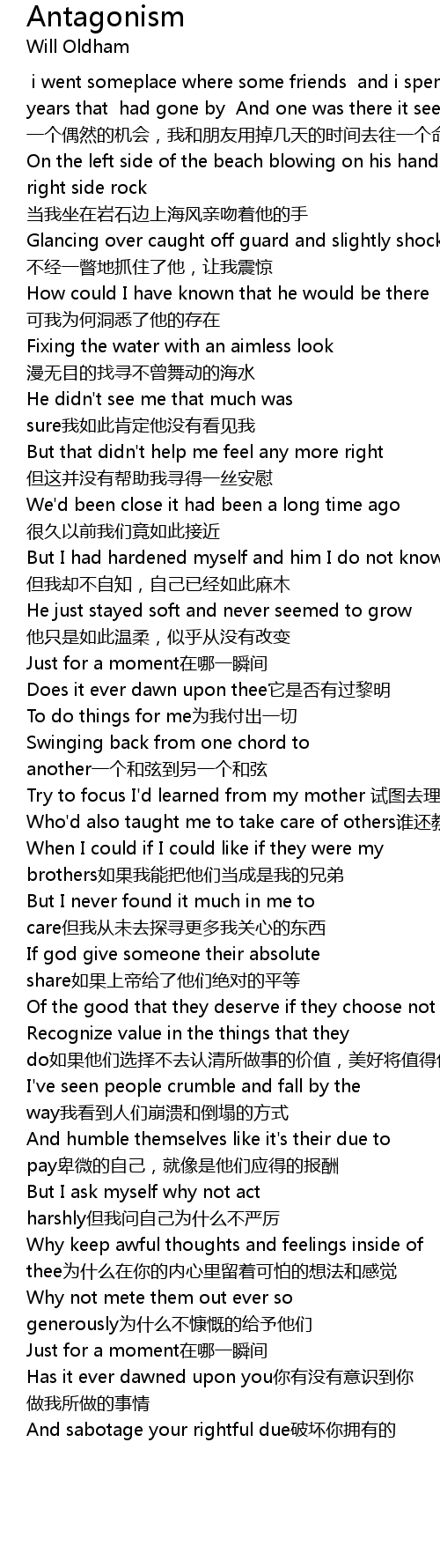 | [01:06-01:12] | How could I have known that he would be there 可我为何洞悉了他的存在 |