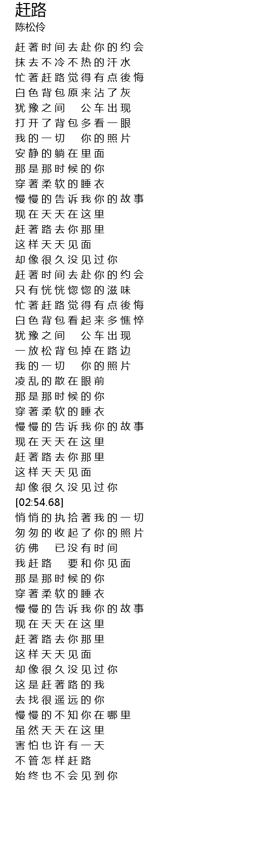 | [01:54.37] | 忙 著 赶 路 觉 得 有 点 後 悔 |