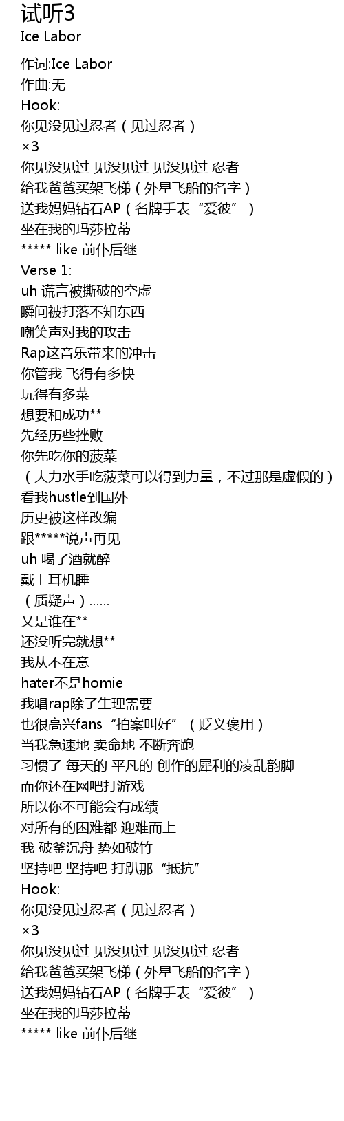 | 作词:Ice Labor | |