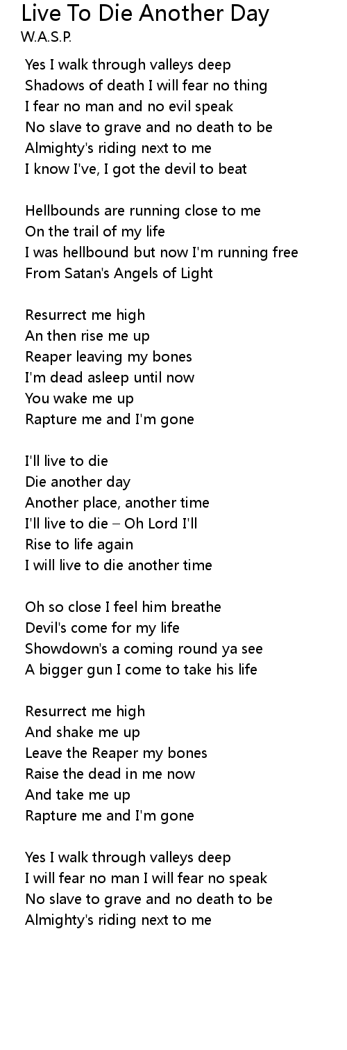 | I will live to die another time | |