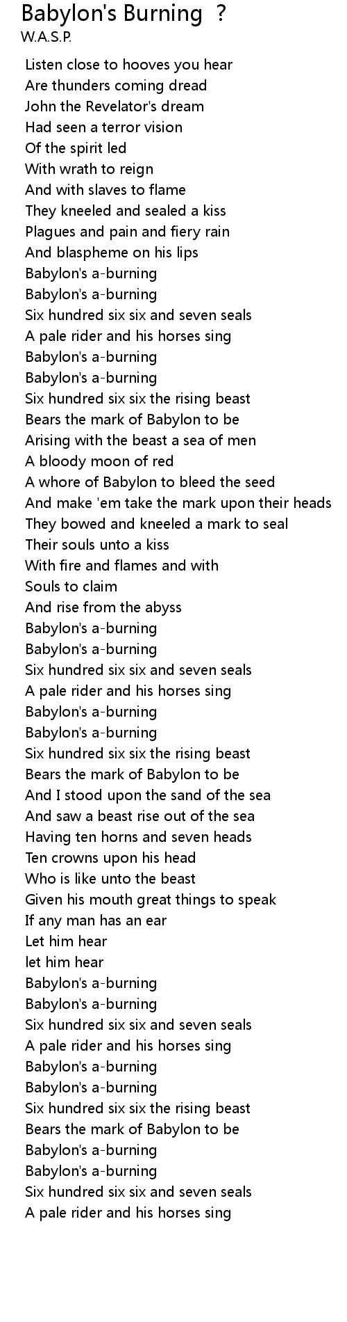 | [02:24.055] | Babylon's a-burning |