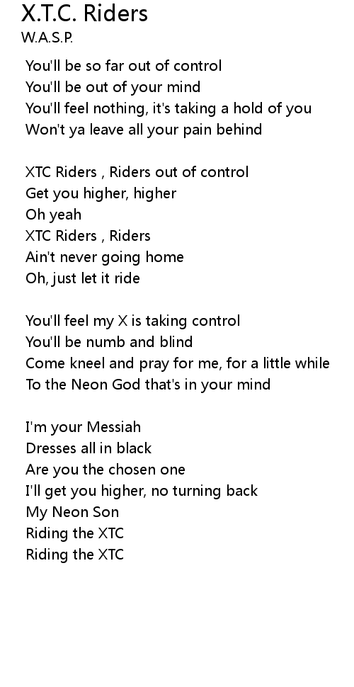 XTC Riders , Riders out of control |