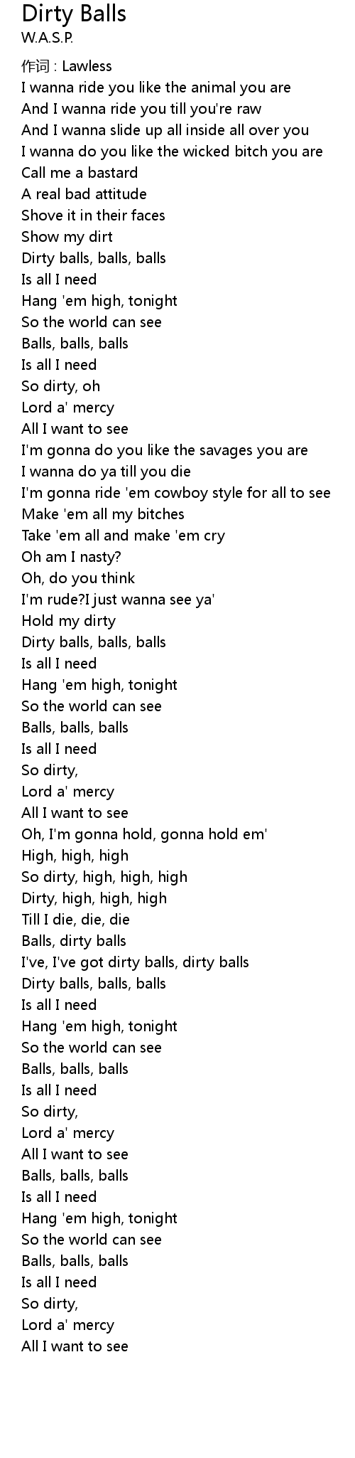 | I' ve, I' ve got dirty balls, dirty balls | |