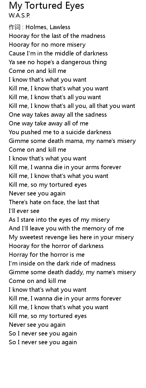 | Kill me, so my tortured eyes | |
