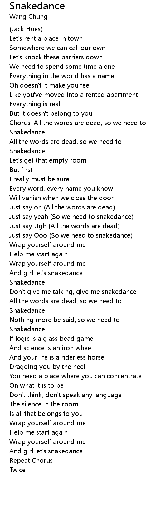 Chorus: All the words are dead, so we need to |