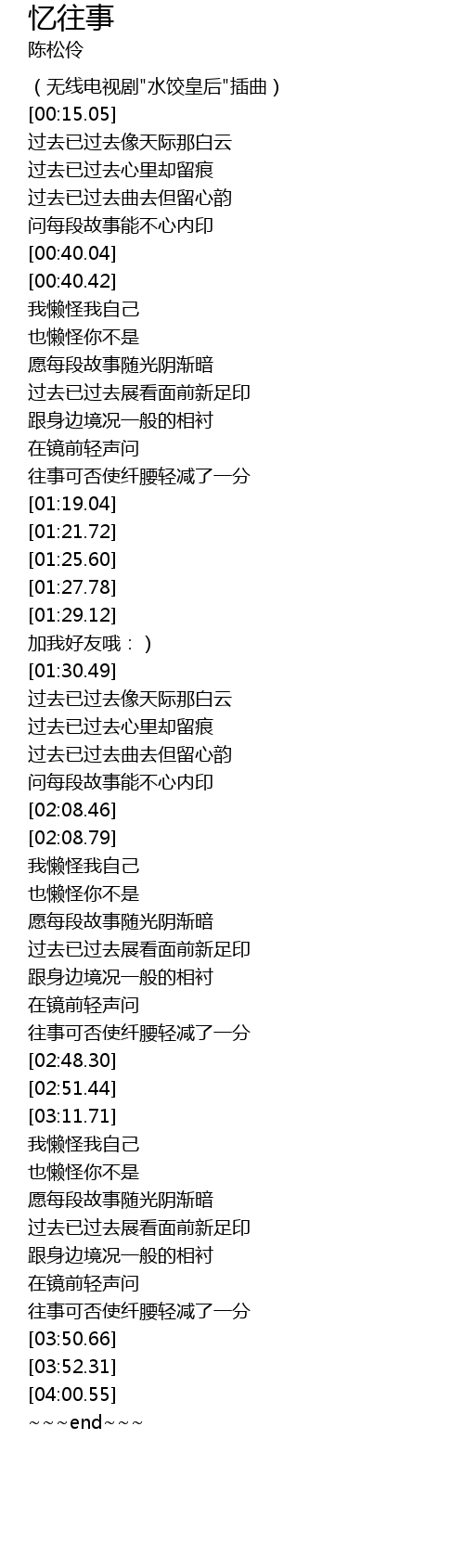 | [03:45.22] | 往事可否使纤腰轻减了一分 |