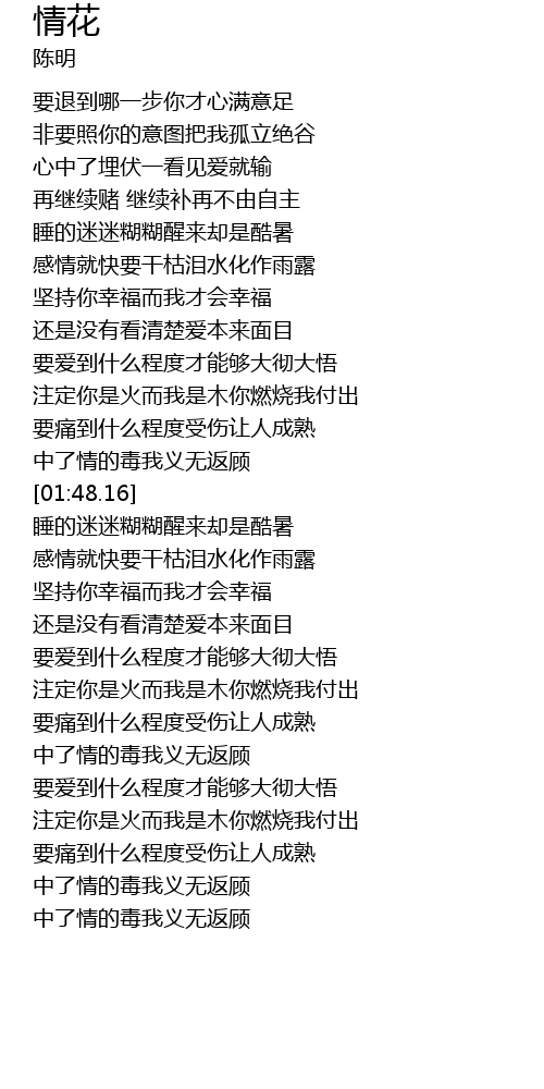 | [01:40.83] | 中了情的毒我义无返顾 |