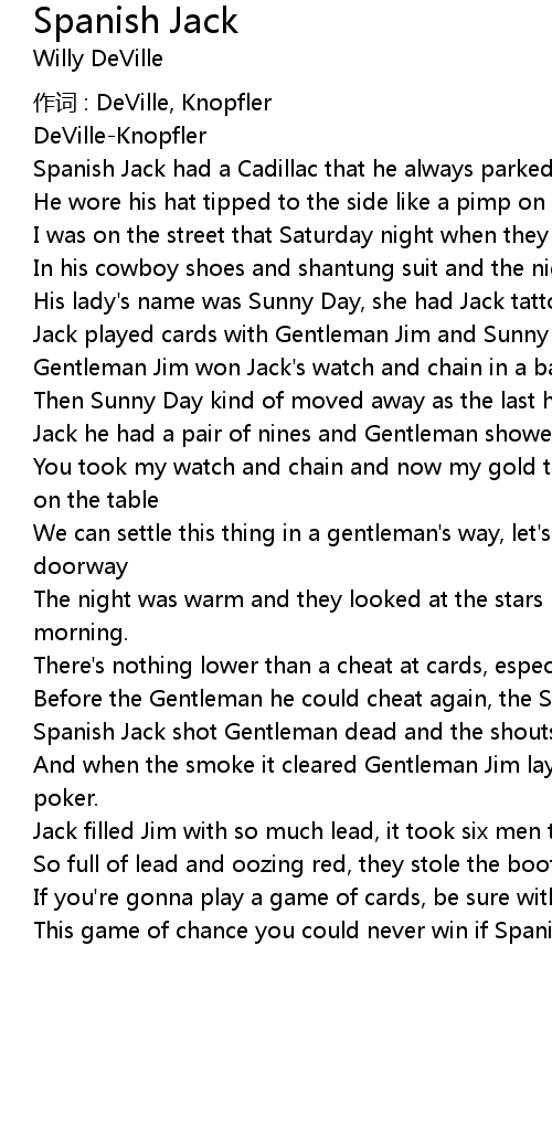 | This game of chance you could never win if Spanish Jack is at the table. |