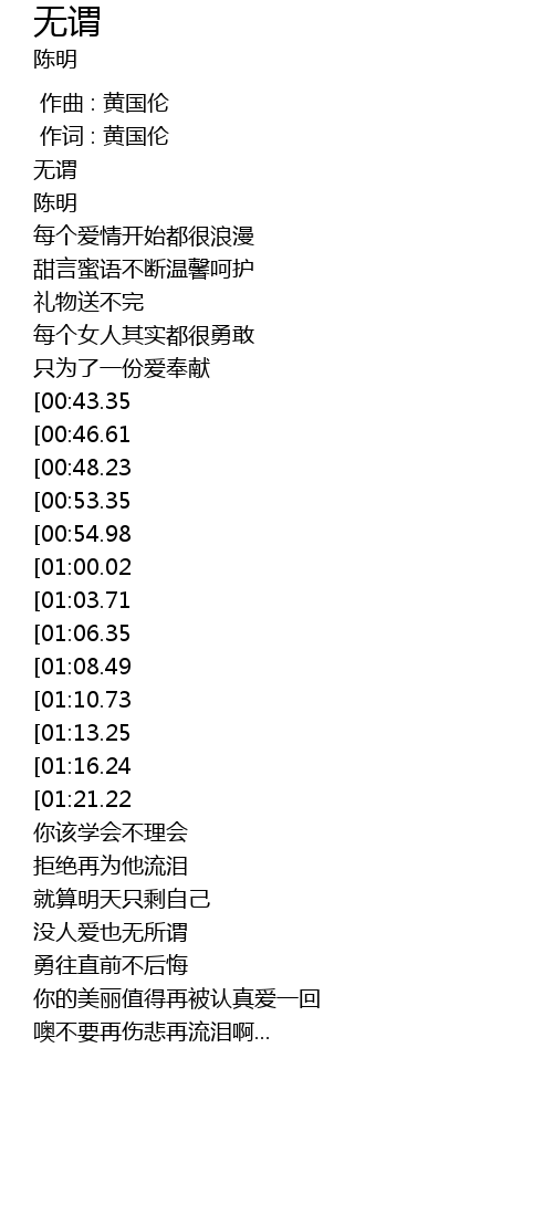 | [02:41.77] | méi rén ài yě wú suǒ wèi |