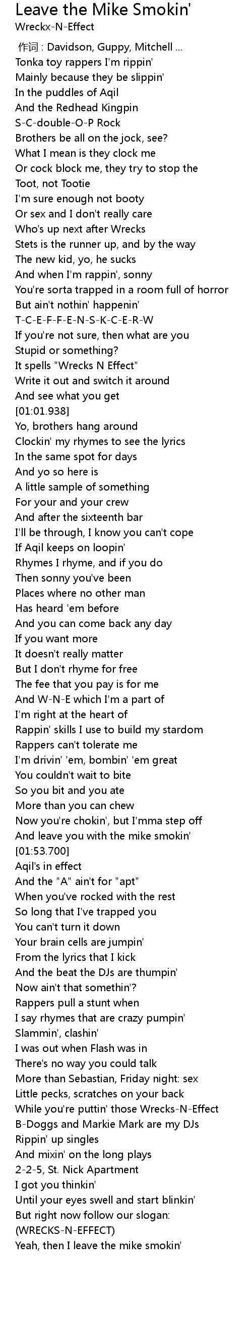 | [02:31.381] | While you're puttin' those Wrecks-N-Effect |