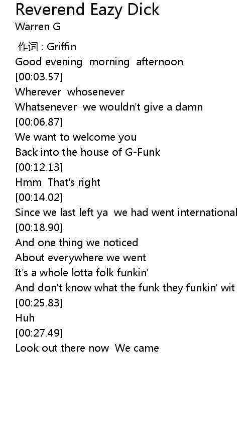 | [00:08.85] | Back into the house of G-Funk |
