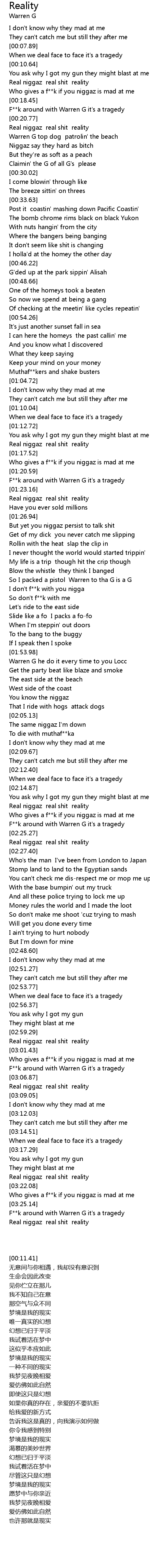 F**k around with Warren G it's a tragedy |