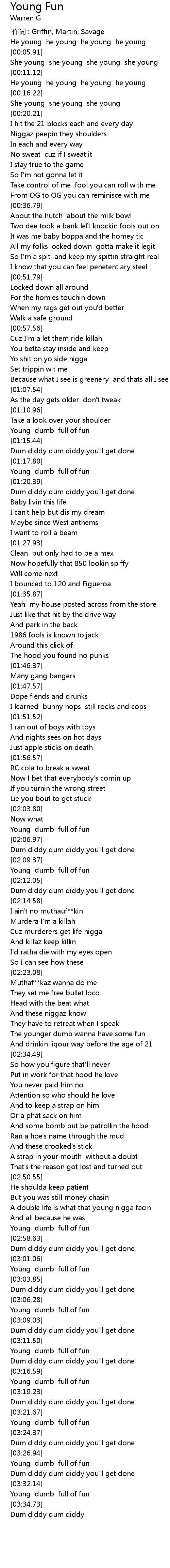 | [03:32.85] | Young dumb full of fun |