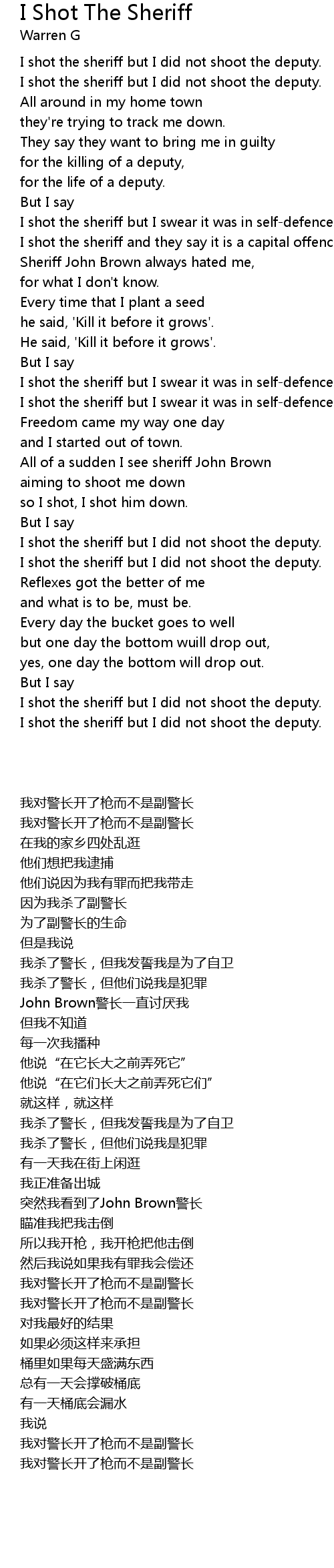 I shot the sheriff but I did not shoot the deputy. |