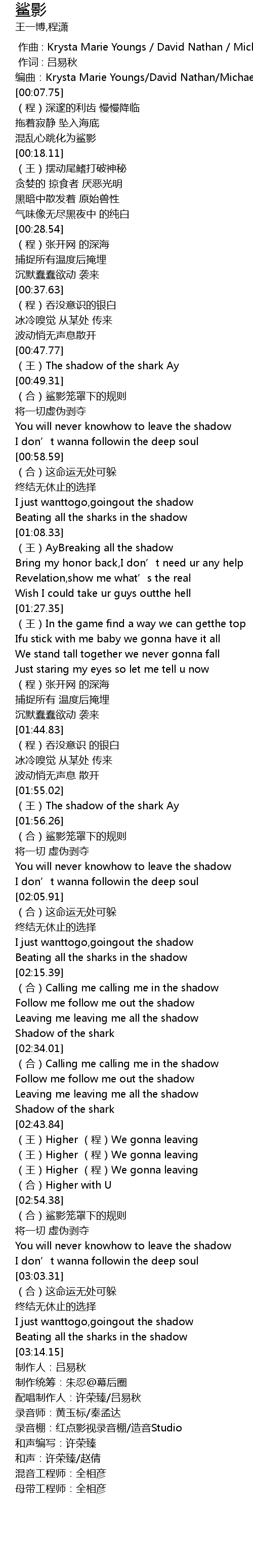 | [01:55.33] | (王)The shadow of the shark Ay |