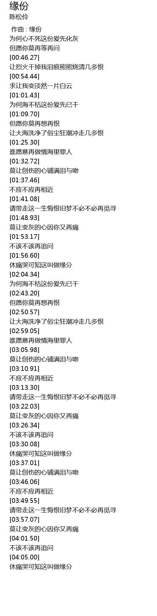 | [04:05.75] | 休痛哭可知这叫做缘分 |