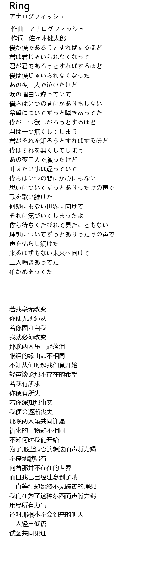 | [00:00.000] | 作曲 : アナログフィッシュ |