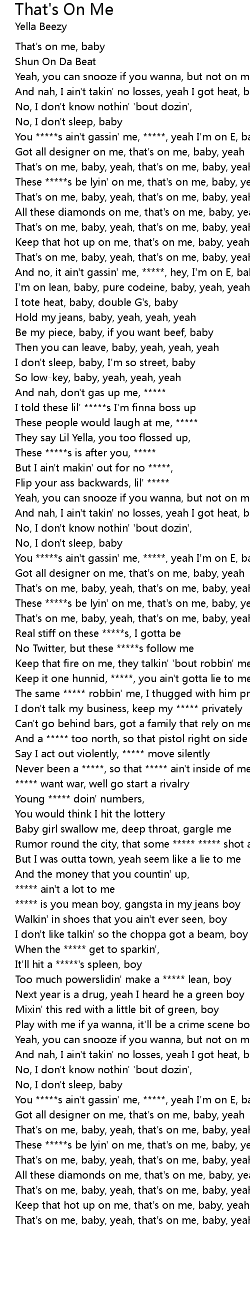 That's on me, baby, yeah, that's on me, baby, yeah |