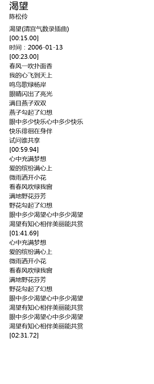 | [00:00.00] | 渴望(清宫气数录插曲) |