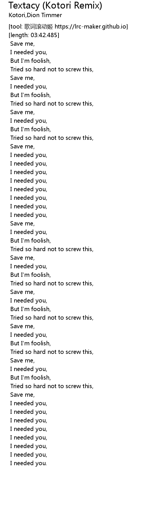 | [01:37.044] | Save me, |