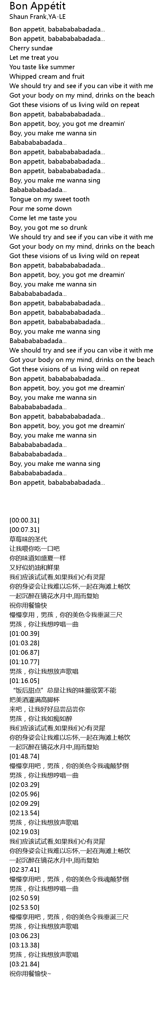 Bon appetit, boy, you got me dreamin' |