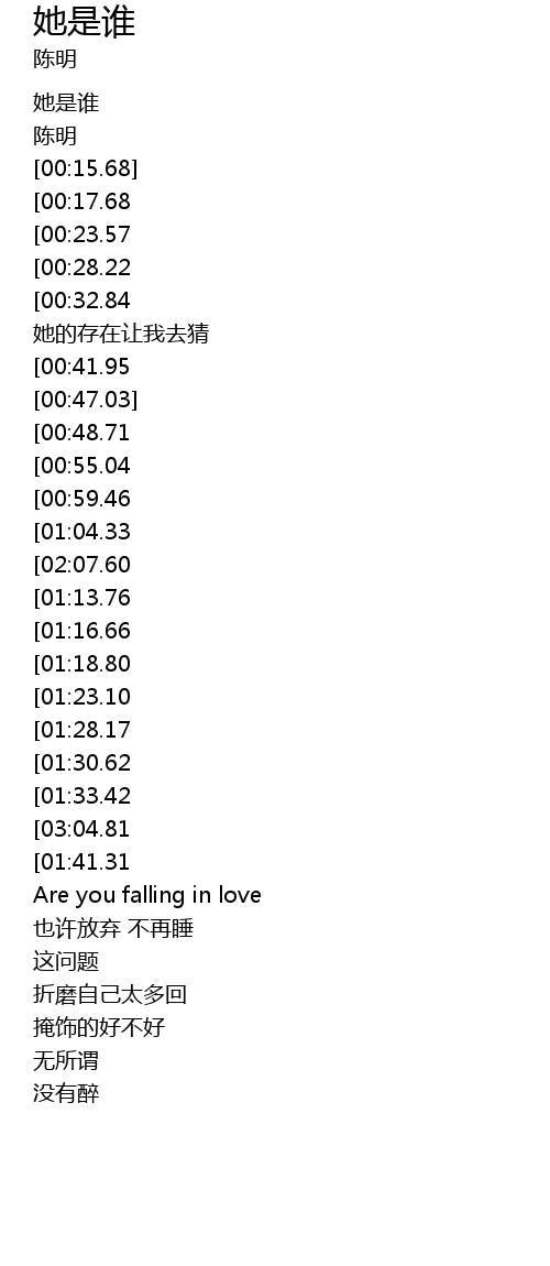 | [00:01.01] | 她是谁 |