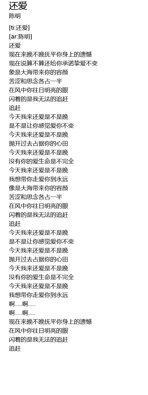 | [01:44.211] | 今天我来还爱是不是晚 |