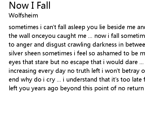 sometimes i can't fall asleep you lie beside me and i weep dancing shadown on the wall onceyou caught me ... now i fall sometimes i feel love and trust turn to anger and disgust crawling darkness in between no light in reach ... no silver sheen sometimes i feel so ashamed to be mercilessly framed idle hands and eyes that stare but no escape that i would dare ... love and trust ... pain increasing every day no truth left i won't betray one day our way leads to an end why do i cry ... i understand that it's too late for me to go i should have left you years ago beyond this point of no return |