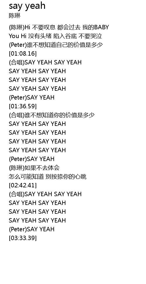 | [02:19.62] | SAY YEAH SAY YEAH |