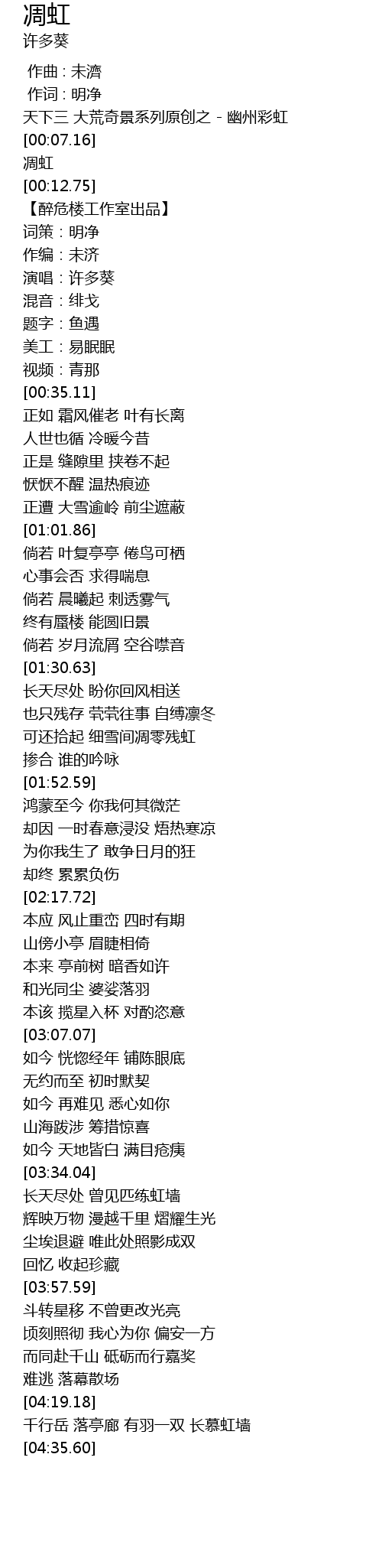 | [00:03.47] | 天下三 大荒奇景系列原创之 - 幽州彩虹 |