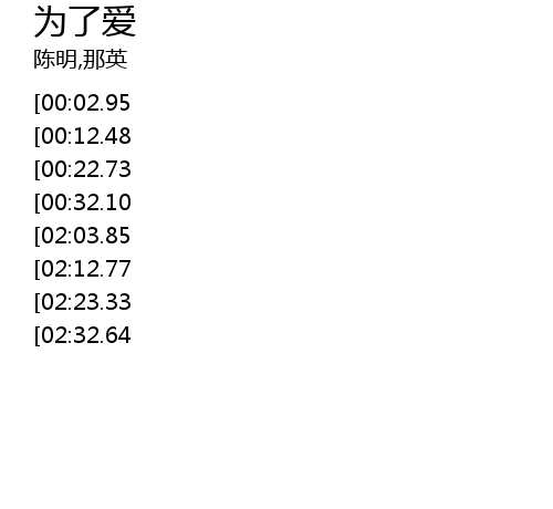 | [03:12.02][02:32.64][01:11.20] | wei le ai yong yuan de sheng kai zai mang mang ren hai |
