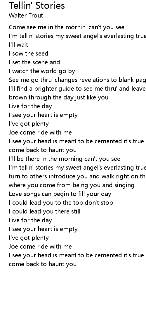 I'm tellin' stories my sweet angel's everlasting true love ways |