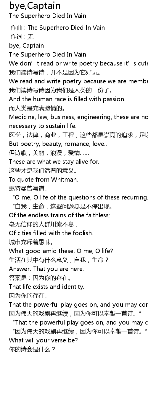 | [00:03.000] | The Superhero Died In Vain |