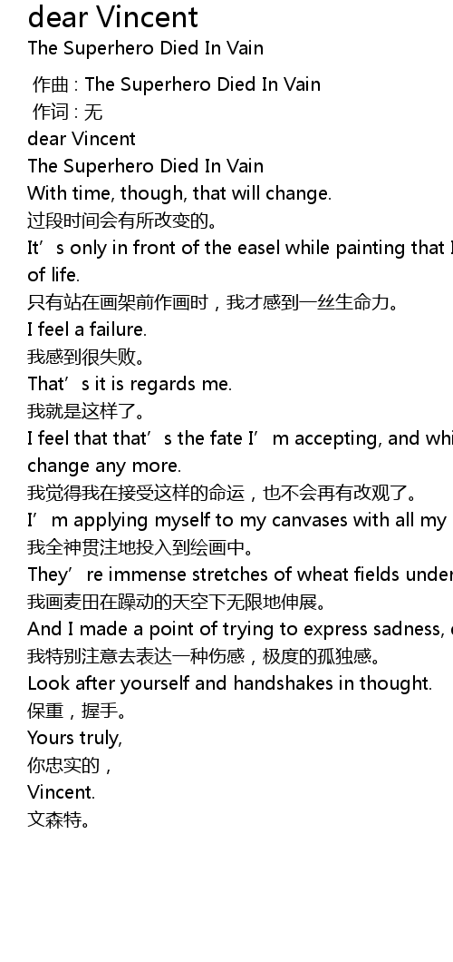 | [00:00.000] | zuò qǔ : The Superhero Died In Vain |